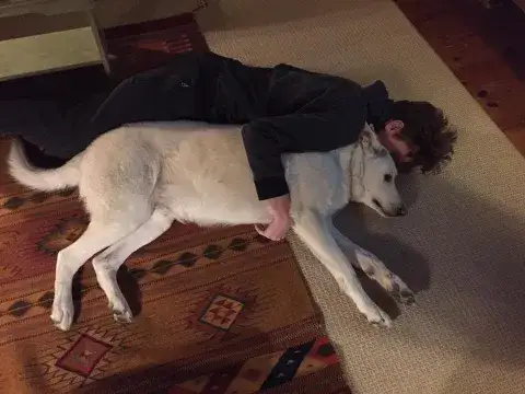 My beloved Prince crossed the Rainbow Bridge on September 9. I had the amazing fortune of adopting him (then "Oliver") from MAGSR ten years ago, almost to the day when he passed away.  I am deeply grateful to them from bringing him into our lives in 2008.  Prince was 11 years old and suffering from a variety of ailments, some of which were painful. He was suffering more than he was living, so we made the decision to use a very humane and gentle in-home euthanasia service.   My wife and I hugged my bestest buddy in his favorite spot at home as he drew his last breaths.   I will never forget my Big Puppy, the decade I had with him, nor any of his loves in life. He loved me fiercely and protectively, he loved my wife, my son and just about anyone who would give him a tummy rubby, a squeaky toy or a stick. He loved to give sloppy kisses, especially when he knew that something was wrong. He gave me and my wife big kisses as we wept over him on his last day. He could not stand for us to be sad.  Prince the Wonder Dog loved to sleep next to me, go running, exploring, chasing deer, walking through the West Virginia woods, digging up rocks and go swimming in the Cacapon River. Early in the morning was never too early for him, and when he would wake me up at 4:00 am with his big, brown eyes and a "CAN WE GO OUTSIDE NOW??" look, I could never say no. My children really don't remember a time when he was not part of our lives. You, Big Puppy, are no longer on watch as our instinctive guardian. You are now our guardian angel. It’s your time to rest, sweet boy. We love you beyond words and cannot adequately thank you for the immeasurable love you shown upon those who loved you.  We miss you so much.