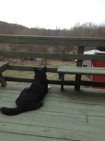 Kyla really blossomed about a year after we had her. She had always been skittish and definitely afraid of any other man (other than her dad). I brought home a kitten. His name is Shadow.  She took this kitten and treated it like it was her own puppy. Even up until she passed, they had a special bond. We have two other cats as well. Well, last night, Shadow came onto our bed, went over to my husband's side, stood there for a minute looking at the floor where she would lay. He jumped down, sniffed around and jumped back up on the bed. I fully believe he knows. As for the other two cats...they seem oblivious.