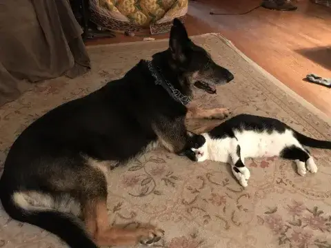 The only issues thru-out were occasional bouts of severe diarrhea, which started a month after I got her. My vet placed her on prescription dog food (ID Science Diet). My previous shepherd (also from MAGSR) who I had for 10 years, was on the same food. Penny would be fine for a month or two— then suddenly have an “attack” of diarrhea in the house. It would come on very suddenly---she didn't have time to ask to go out. I usually took her to the vet ASAP; he’d give a shot to stop it, then she’d be on medication for 10 days. They attributed it to having a sensitive GI system. I never gave her people food—just an occasional dog biscuit.
