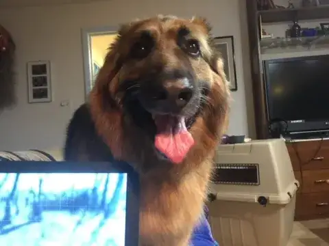Our dog Jedi, whom we adopted from MAGSR in 2016, ran free over the Rainbow Bridge on December 16, 2022 after not enough years as a beloved member of our family. Jedi is loved in continuum by Valerie, Graeme, Ryleigh, and Todd who were blessed to have found a furry companion so loyal, loving, and playful until the last calling. We surrounded him as he passed over and never imagined being so in love with a beast both ferocious and cuddly. Jedi loved his ball playing more than anything and had to be outside to supervise all grass mowing activities involving the riding mower.  His daily treat regime evolved from showing off his paw control to racing Ryleigh to the couch and barking/yipping while sliding through the twisting route from kitchen to living room. Jedi often overpowered Graeme in frequent games of rope pull but I think both let the other win an equal amount of time without admitting to any purposeful losses. Jedi loved the creek and hated baths, he was a weirdo from start to finish.  Use the garden hose fill up his water bowl, or just say water in general and he would disappear. Mention the creek or start hiking through the woods and he would be in the water, over his head, trying to drag logs off the bottom before you could call him back. I'm not sure Jedi understood the creek is made of water, the same water he was so careful to avoid in any other circumstance, he didn't always utilize his rational brain.  He did learn how to unlock, and open, the sliding basement door so we are not entirely sure if he was a savant or simply a screwball. We are leaning savant as he learned how to spell the words we couldn't say without an excited reaction. We still can't believe he's not lying in wait for us to get out of bed, come back from an errand, or monitoring the four of us from a central position. We miss the clack of his nails on the floor, the pilling of GSD fur in all corners, under every piece of furniture, and winding up in every drink or dish prepared. None of us were ready for him to go but with two torn/bad knees and a late-stage cancer diagnosis we did everything we could to keep him at home with us from hand feeding to carrying him up the stairs when he couldn't get enough momentum to hop all the way up.  Jedi was the heart of our house and the void without him is longingly painful. Jedi was our everything, we love him endlessly and are thankful for the circumstances that brought him to us and angry for the circumstances that took him away. We are forever richer for having loved Jedi, and we know he is still with us, watching over us, forever our companion. Todd & Valerie Harshman