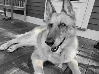 Smokey came to us on June 2, 2012. We had to put Smokey down on July 21 of this year. He was 14 years and 2 ½ months, the longest living Shepherd that Chuck has ever had. He was the greatest dog we’ve ever had.  Everyone loved him: he was the Mayor of the neighborhood. Small dogs who were afraid of most dogs just approached Smokey and he was so gentle that they adored him. Friends with small children and grandchildren who were terrified of dogs used to bring them to meet Smokey and they left here loving him and becoming  more able to be around other dogs. If Smokey wasn’t perfect, then he was the closest thing to perfect I’ll ever see.   We’ve been spoiled by him. Of course, we did our share of spoiling. We used to kid Smokey that he was a very wealthy dog; he lived in a big house and had two servants, one of whom was his personal chef. We just wanted to let you know that he had a wonderful life, was beloved by everyone who met him, and I suspect we’ll be grieving him forever. We are grateful to have gotten him from you for these 9 years.