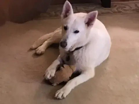 We recently lost Snowy who was a huge part of our family and pack. Now there is this immense void that Snowball once occupied. Words don't seem fitting enough to convey the depth of loss we feel. So we thought it was only fitting pay homage to her life and legacy. This is the life of Snowy. Back in the spring of 2010, we were alerted of the need to rescue a dog, a white German Shepherd. Some people who saw this dog even wondered if it could possibly be a coyote. The dog had been hanging around a horse stable. When we first arrived on the scene, it was obvious to us that it was a white female German Shepherd. But because she was dirty and thin, we could see why some people might think she was a coyote when they caught a quick glimpse of her. She wasn't scared of making herself seen and the riders at the stable frequently saw her. But she was smart. She knew not to get close to the horses and riders or put herself in a position of being captured. Many locals in the area were feeding her which helped to keep her there. They would drive by in all hours of the day or night and drop off cheeseburgers and the like. It was apparent that she was very young and in need of rescuing. You could see her ribs. But how did she get there? How long was she out there? Was she dumped? Did she escape from somewhere? We always wondered this. But more importantly, we needed to devise a game plan to capture her and bring her to safety. Monty and Sheri and a few other very special people (you know who you are) started working on right away. As we frequented the area to begin conditioning her to our presence, we would put food out for her nearby to us. We tried befriending her by trying to hand feed her. While she was food motivated, she would come ever-so close but not close enough to allow us to touch her. She would even walk behind Sheri within a few inches in an attempt to get the food that Sheri had in her hand. Seeing that physically capturing her this way wouldn't work, we moved to the next phase. We set up a humane trap. We are experienced in tracking and trapping and have captured dogs with humane traps in the past. However, this girl was having none of it. She would walk to the entrance to the trap and not enter. This went on for a while. Knowing this wasn't going to work anytime soon, we had to change our strategy. We set up a kennel run in the field. We tied the door open and began putting food in there for her to eat when she got the nerve to enter. Since the the kennel run was much larger than the standard humane trap, she felt more at ease with entering. Once she routinely entered the kennel run, it was only a matter of time before we were able to shut the door with her inside. After she was captured and authorities were notified, we were given the go ahead to transport her a local veterinary hospital so that her health care could begin. We had been working on her capture for weeks at this point. Once the dirt and grime was washed off of her, we could begin to see her beautiful white coat. This diamond in the rough became known as  "Snowy".  While in the hospital, all of us involved in her capture would routinely visit with her to help condition her to being around humans. She was very feral. She put up with us but she never once acted aggressive in any manner. You could say she was very passive. She missed out on socialization with humans early in her life and therefore, had no reason to trust us.  The next step was to transfer her into a foster home. So we decided to bring her to our house as our next foster. We knew this would be a long process as she was an extreme flight risk. She was not bonded to us and had no reason to be. Every precaution was taken to prevent her escape while we were bonding. As she began bonding to us, we were able to let down our guard little by little, but not too quickly. Because we already had other Shepherds of our own, this helped Snowy transition into living in a home. She was awesome with other dogs and she learned to trust humans though them. She never acted aggressive with our dogs. True to her nature, she was very passive with them, too.  After fostering her for about a year and not finding the right adoptive home, we made the decision to adopt her ourselves. We knew her better than anyone, became very attached to her and she became very attached to us. She liked Monty... but she loved Sheri. Her world revolved around Sheri. Snowy was attached to our dogs as well. But now, this once practically feral dog had blossomed into a beautiful, majestic family member who adored her humans, particularly Sheri. Snowy wasn't too crazy about visitors though. She wasn't aggressive with them but she was most comfortable keeping her distance from them. As the years went by, that too changed and she would inquisitively wander up to a visitor to say hi. Fast forward, though the years we brought many new fosters into our home. Some stayed, some did not and were adopted into loving homes of their own. But when we brought a new foster home, Snowy was our first test dog. She never let us down and was always willing to allow a new packmate into the fold. She was bombproof in this manner. After arriving to our house as a new foster, she never spent a night alone. There was an occasional stay at the vet's office for something health related which was out of our control. But we never ever willingly left her alone. Her days and nights of living near the stable in the woods, chasing off the occasional fox which was trying to steal food that was intended for her, were long gone. Snowy was home. Through the years, Snowy learned to like all sorts of things. Some are very normal like fetch, swimming in the pool, roughhousing with her humans, going on walks. But she also had some comical behaviors (all scent driven) such as rolling on fresh sheets on the bed, nuzzling into Sheri's long hair, getting a new toy and rolling on it. She loved peanut butter, ice cream, milk, sliced cheese, chick