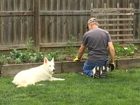 Three years ago my husband and I lost our girl of 11 years.  Our hearts were broken and the house was so quiet we couldn’t stand it.  So we learned of the Georgia-38 pups and decided to honor our girl by saving another sweet ones life.  That is when we found ourselves at MAGSR.  And there she was, Gracie (fka Amika) sitting across the field with a little boy knelt in front of her.  Gracie was so gentle with him she caught my eye immediately.  We walked over to meet her and spent time walking her around.  It didn’t take long to know we had found our girl.  The ride home she was so calm and quiet, from that point we knew we found our travel companion.  Gracie loved going for car rides so much it became a Friday night routine, along with a bite or two of burger we would stop and get for her.  Boy did she love her car rides!  Gracie also loved her walks with her Daddy and did very well in her obedience’s classes.  She mastered sit, stay, come, down and shake very quickly, we know we had a smart girl.  Gracie was a quiet girl her first year with us.  I mean she didn’t make a sound, but one day the door bell rang and there it was; a strong Shepherd bark, the kind that means business.  From that point Gracie always alerted us of strange sounds and we knew she finally felt she was home.  During that first year we had noticed that Gracie had pain in her hips and legs and the vet confirmed it was hip dysplasia. She was placed on pain meds that helped.  For the first time after that we saw Gracie run!  Gracie took to both of us, but her person was my husband.  She followed him everywhere.  They both enjoyed the yard no matter what they were doing, gardening, cleaning up or just enjoying the sun and breeze.  Over the next two years we spoiled Gracie and also felt we had to protect her because of the life she previously had.  As the time passed we noticed it was becoming more difficult for her to sit down without having pain and she began to stumble when walking so she laid more.  The vet said it was degenerative myelopathy.  We changed her meds and did all we could to keep her comfortable; but then sadness happen.  Gracie’s back legs just gave out and you could see she was in pain.  The vet said we could try steroids but other then that there wasn’t much he could do.  So with a very heavy heart September 7th, 2021  the decision was made to end her pain so she could run free and pain free.