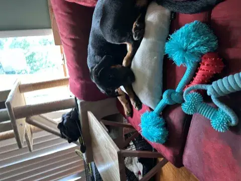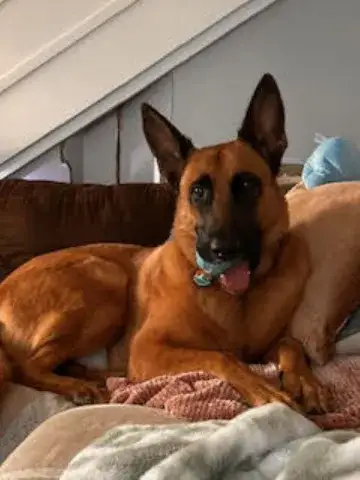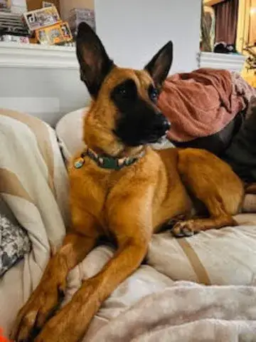 We adopted NIgel, Nemo Litter, on 10/30/2024. When we picked him up, he was about 17 lbs, and since then has grown to over 50! He's a lover, he loves people and dogs alike and has a great personality. He absolutely adores our 13 year old, we call her his old woman. Anytime he's afraid of a loud noise or needs some comfort, he finds some way to squeeze himself onto her bed. He loves to lay on our window bench and keep an eye on the cul-de-sac. We love having Nigel in our family and are looking forward to many years with him.