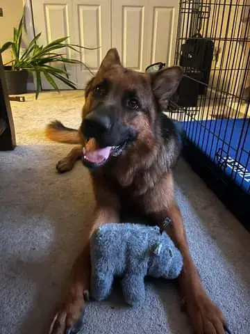 Hemi is awesome. Such a good dog. Typical goofy German shepherd antics. Been handling his Heartworm treatment well. Got a dog walker that comes once a day around noon and lets him out. His medicine has him peeing a LOT. But overall he’s such a good dog. Everyday his personality comes out more as he gets into a routine. I got really lucky with him. Thank you guys. Can’t believe he was a stray. Crazy.