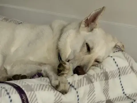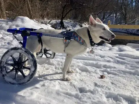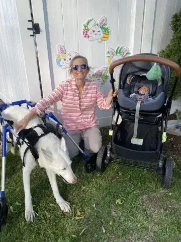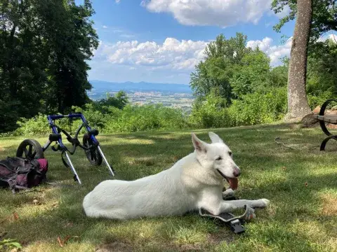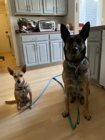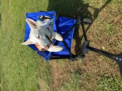 Leona continues to be the sassy, strong girl the wonderful MAGSR community May remember! While her DM diagnosis in January 2023 has altered her life, she’s sought out silver linings and continued to find adventure closer to home. She became the mascot of the local farmers market pet stand, is recognized as the applauded surviving-and-thriving-with-DM ambassador  of her neighborhood…. And has exceeded expectations as a big sister !  While we know our time is limited, we continue to cherish it with gratitude for all those who have been part of the journey.
