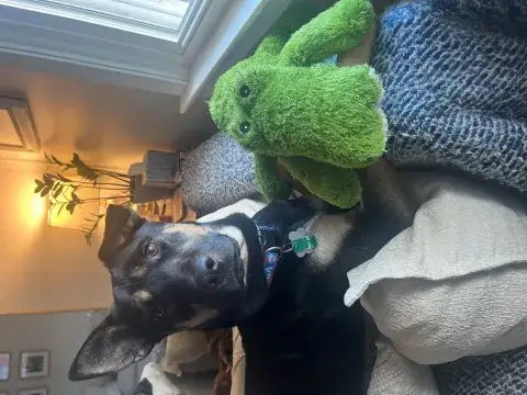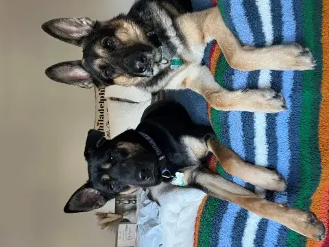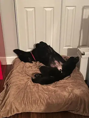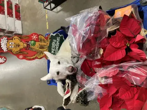 15 January 2024 - Pumpkin (now Maggie Mae) has settled in nicely.  She is very comfortable cuddling with us but is not happy to be left alone--we will work on that using the info that you provided. 25 May 2024 - Attached is Maggie Mae’s (MAGSR-Pumpkin) first birthday photo.  She weighs 73 lbs and has settled in well with us.  Still working on training but she is so stinking smart she has come along way.