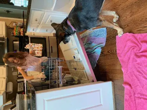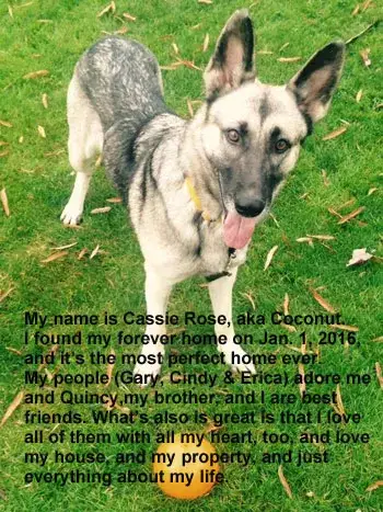 Ellie has turned into a beautiful sweet girl. When we got her she was scared of everything. Fear aggressive. We have had her for 17 months now and she is a very happy safe girl. She is super attached to her sister, Stella. As long as she is with her, her anxiety is at bay. She is very protective of me. We found out through DNA testing that she is 25% Grey Wolf. She LOVES to counter surf, but we have finally outsmarted her ;) This goofy girl is loved by everyone that knows her. She has been a perfect fit in our house J