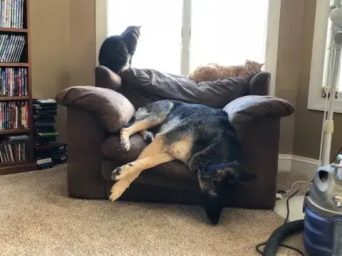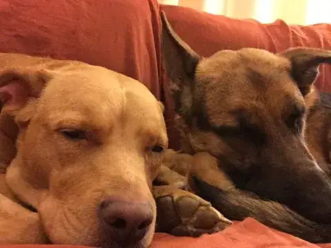 MAGSR Alums Shae and Dexter are best friends most of the time unless toys are involved. They love playing and lounging with each other. Dexter loves his couch and hogs it daily.