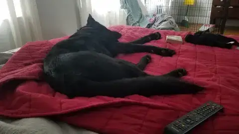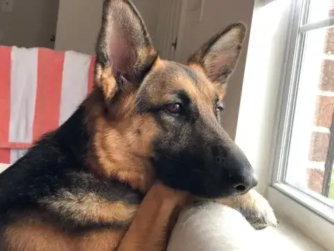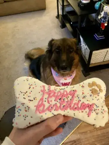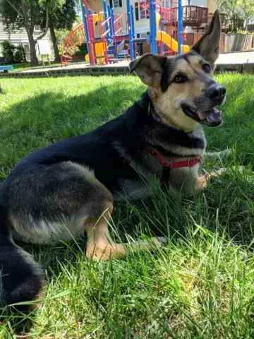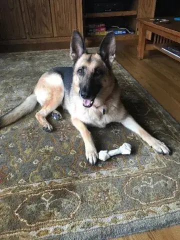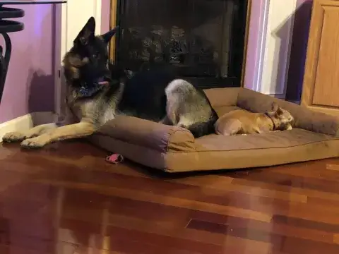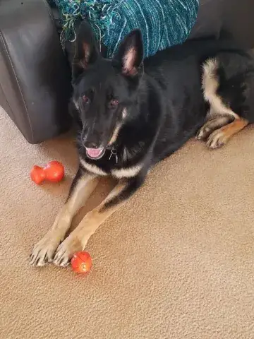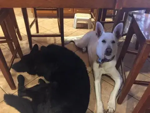 Sugar NKA Dixie has been the perfect addition to our family. She's brought some life back into the household after our lab passed away, and bonded very quickly with our other German Shepherd, Timber (pictured below). She's happiest following mom all around the house and getting her snuggles in every day. She especially enjoys playing (and sometimes tormenting) Timber through endless play and stealing his treats. Dixie LOVES her long walks and won't miss the opportunity to sing along with other dogs when they howl. She keeps a watchful eye over her house (often peeking through the bay window to keep tabs on everything) and always welcomes everyone home with the biggest hug and kiss, as long as she gets her belly rub in, too. :)