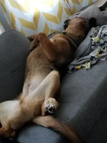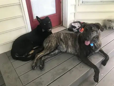 Dak enjoys spending time and cuddling with his doggie brother Boomer.  We love having Dak as an addition to our family and he has made it complete!!