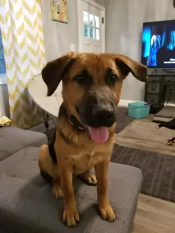Gus was adopted on August 2, 2018 by Bri and Will. He is best friends with his one year old pal, Sal. Gus and Sal love to wrestle and chase each other. Gus also loves the dog park and hiking! He is a loud pup and tells us everything we need to know. His favorite toy is his ball and he can catch and fetch for hours. He will give you all the kisses you want and then some. Gus is looking forward to Christmas, and even started celebrating by bringing his mom ornaments off of the tree.