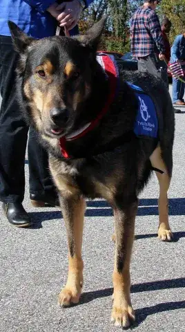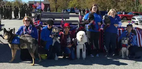 Here's a quick pup-date on Takoda. He's settled in well with our older Golden Retriever, Bailey, and they enjoy each other's company. Bailey generously shared her monthly Bark Box toys with Takoda, but he played too hard with them and the toys were reduced to bits of stuffing in no time at all. Now both dogs get their own Bark Box; Bailey gets fluffy toys and Takoda gets the Super Chewer toys all to himself.  Takoda has met a lot of new friends on his daily walks, both the two-legged and four-legged kinds. In fact, he's so good at making friends with everyone that he's now certified by Pets on Wheels as a therapy dog. He seems to enjoy cheering up the residents at a local healthcare facility. He was even in our town's Veteran's Day parade with his therapy dog buddies.(Photos enclosed.) We're very grateful to MAGSR for trusting us with Takoda. We look forward to spending many, many years together.  Tracy Denman