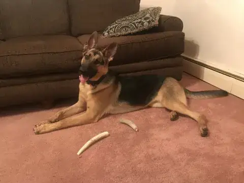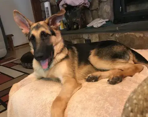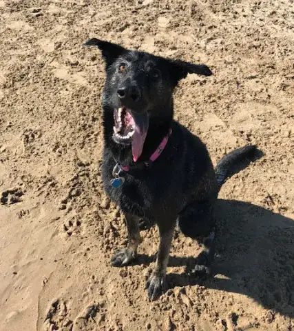 Cinder has definitely come into her own in our family. When we first brought her home, she was not much of a people person. She played with Macey some and mostly did her own thing. Now, she is always cuddling with one of us or following us around the house. She knows this is her home. Cinder is quite spoiled, and loves her treats. We found out she does have early hip dysplasia, but it's very early and she's still very active. It doesn't stop her from hikes, going to the dog park, or wrestling with her fur sister. We are VERY thankful for your organization, and are always pointing people your way. Thank you for bringing our baby into our lives!!