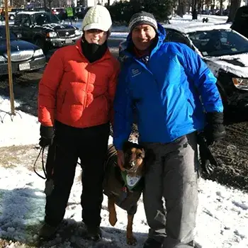 Baker earned his Canine Good Citizen, passed the ATTS Temperament Test, was herding instinct certified, became the 25th AKC Canine Partner to achieve the Coursing Ability Advanced (CAA) title and the 6th AKC Canine Partner (in the world) to achieve the Coursing Ability Excellent (CAX) Title!   He became Certified Therapy Dog.  We were interviewed by Jim Cantore of the Weather Channel.  We have performed in 3 talent shows. We educated a Girl Scout Troop about dog training and care.  Baker has been my training partner for 2 Ironman Triathlons and continues to be the best running partner. We are currently training for a half marathon.   We also biked 100 miles on the C&O Canal last May. (I had a special dog trailer on the bike so he could ride if needed.) Oh, and we have started playing agility too!