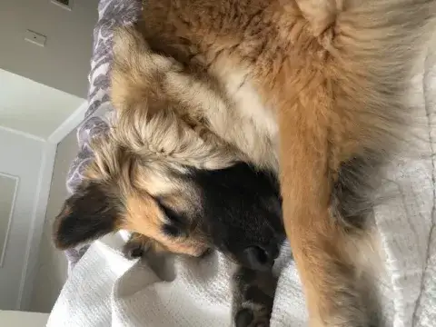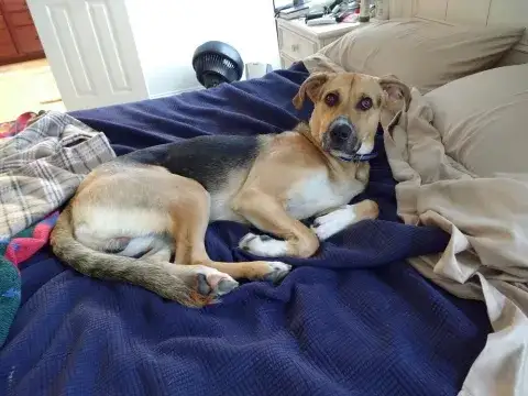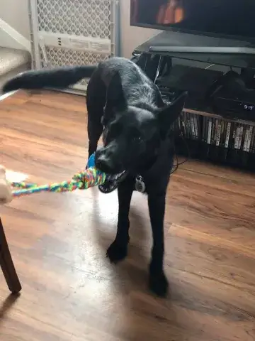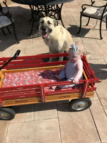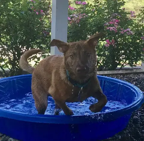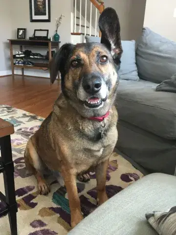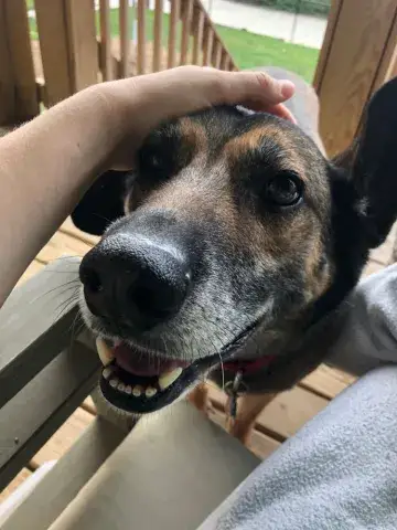 We have had our Big Baby (my nickname for her) for two years now. She will be 3 in December and is such a joy and is so smart! She loves to play and can spend hours playing catch. She will literally throw her ball back to me after she has caught it. She knows a number of commands and has great manners. She loves to learn, to play tug of war, and she invites herself into our elderly neighbor’s house to check on them and leave. No seriously, if someone is by their front door, she will run over to go inside and run to the back bedroom to check on “Pop” (the elderly gentleman) and then comes out! She is full of love and truly believes she is welcome anywhere she goes. She brings us so much joy and is my number one snuggle buddy. Our older dog (13) has a new found energy and loves to play hide and seek with her. Thank you for our Big Baby, my light, my joy!