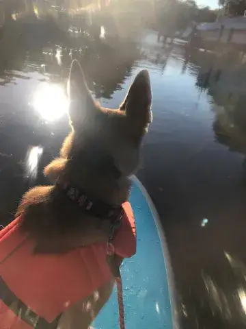 Astrid (preciously Cora) was adopted 6/22/2014. She is the best friend of our now 10 year old daughter, likes dogs & people & cats, and often gets complimented on her behavior.  She also is not a fan of any delivery people, ever.  She likes riding on a paddle board, snow, fetch, and laying on couches and beds.  She’s an amazing dog!