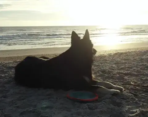 Juno, aka "Primrose"  - Adopted September 3rd, 2013   Juno has been a blessing in my life. After the loss of my first German Shepherd - Juno came to the rescue and made my life complete again. We now live in Florida where Juno enjoys swimming in the ocean and catching frisbees. She even has a feline adopted sister she loves. She is spoiled beyond belief!!! I work from home so she is with me 24/7 pretty much. Juno is sweet as can be, affectionate, loyal, loves people, smart, and is behaved and obedient off-leash. Not sure what she is a mix of - but, something very unique. 100lbs of awesomeness! Juno may be the most beautiful dog in the world. She gets attention and stopped everywhere she goes with me.    Thank you MAGSR for everything!!!  Victor